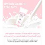 The G9 White In Milk Sun SPF50+ PA++++ is a hybride sunscreen (contains both chemical as mineral filters) that offers protection against both UVA- and UVB rays. The suncreen is formulated with sebum absorption powder that will lessen the changes of becoming oily or greasy during the day.